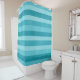 Ein Designvorhang mit modernen Duschvorhängen und Streifen in Aquablau, aquamarin, Türkis und Minze.