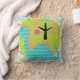 Kinder, die Drachen Liebe und helle, lustige Designs werden Liebe dieses niedlichen Drachen werfen Kissen mit einem aquablau und rosa Zickzack Streifen Drache auf einem grünen Kreis mit einem Zickzack gestreiften aqua blau, heiß rosa, grün, grau und weiß Hintergrund. Dieses Drachenkissen ist perfekt für sein Schlafzimmer, das Spielzimmer, das Kinderzimmer oder den Erholungsraum.