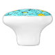 Aqua Blue Watercolor Daisy Pattern Keramikknauf
