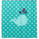 Duschvorhang mit niedlichem Wassergaissal mit weißem Polka und Marineschiff auf weißem Grund mit türkisblauen Punkten.