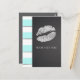 Aqua Blue & White Imitate Silver Shimmer Lips Event Postcard. Passende Artikel in meinem Geschäft. Fügen Sie den gewollt Text hinzu.