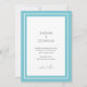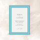 Moderne Hochzeitseinladung mit einem schlichten, aber eleganten Design mit Ihren Details in einem doppelten Rahmen. Das Farbthema ist aqua / türkis / aquamarin und kann in der Design-Editing-Tool geändert werden. Die helle Farbpalette macht diese Einladung ideal für eine Tropen- oder Strandhochzeit im Frühling oder Sommer.