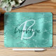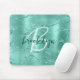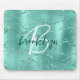 Aqua Brushed Metal Glitter Script Monogram Mousepad