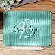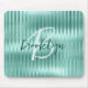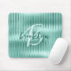 Aqua Brushed Metal Stripes Script Monogram Mousepad