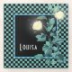 Das elegante Design mit Aqua- und schwarzem Schachbrettboden, leuchtend weißem Rosenblumenstrauß und individuellem Namen.