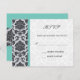 Aqua Damask Monogram Wedding RSVP