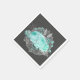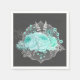 Schönes und dramatisches Aqua- und Silber-Aqua-Aquarell Blumenstrauß mit Verzierungen und zartem mattierten Rahmen auf Kalkboard schwarz Hintergrund