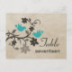 Aqua Floral Lovebirds Tischnummer Postkarte