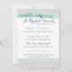 Graue und weiße Zickzack Muster Braudusche Einladung mit einem Aquaband. Gedruckte Designeinladung ist kein echter Bogen angebracht.