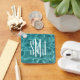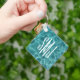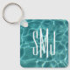 Ein einfaches dreiteiliges Monogramm-Design auf einem runden quadratischen zweiseitigen Schlüsselanhänger. Auf der Vorderseite ist das Textdesign für Ihre 3-Buchstaben-Monogramm-Anforderungen anpassbar. Auf beiden Seiten befindet sich ein Aquarell-Grün und ein aquamarines Foto mit Wasser. Wenn Sie gewollt... fügen Sie Ihr eigenes Foto oder Text zur Rückseite, um Ihren eigenen personalisierten Schlüsselanhänger zu erstellen.