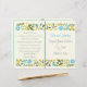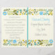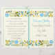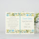 Vintage Wasserhaube, gelbe Blütengrenzenfeier und gefaltetes Party-Programm mit einer Abbildung einer Blumengrenze aus hübschen whimsical wilden Blume in den Tönen von Aqua, Gelb und Oliven grünen Blätter auf Elfenbeinhintergrund. Text in grau und aqua. Dieses niedliche, moderne, elegante und stilvolle Hochzeitsvorlagendesign ist komplett anpassbar und gehört zu einem Hochzeitsgeschenk-Set. Ideal für Ihre rustikale Gartenanlage oder Wald Sommerhochzeit. Man muss es in der Mitte falten. Wählen Sie nur diesen Papierwert aus, da er sich gut faltet.