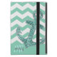 Eleganter Entwurf, der die blauen und weißen vertikalen Zickzack Streifen des Aqua kennzeichnet; ein glittery Anker mit Glitzern und prägeartigem Effekt. Personifizieren Sie ihn mit Ihrem Namen und Monogramm. Mode, modern und girly!