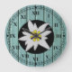 Diese runde Acryluhr hat eine Grafik, um ihr einen aqua-hölzernen Slat-Look zu verleihen, mit einer schwarzen runden Scheibe in der Mitte, mit Grafiken eines Single großen Edelweiss-Blume. Römische Zahlen rund um die Außenseite für ein altmodisches Aussehen. Anpassen, um jeden gewollt Text hinzuzufügen. Macht eine tolle Geschenkidee.