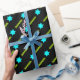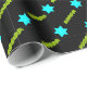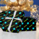 MACH! Geschenkpapier für jüdische Feiertage und Ereignisse, die NICHT blau und weiß! Episches neues Design von sehr hellen, aqua 6-spitzen Sternen mit Trailing neon grün gewellten Bänder hinter und Set auf einem schwarzen Hintergrund. Für Bat Mitzvahs, Geburtstage, Hanukkah, Duschen & mehr.