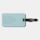 Elegante Gepäckmarke in weißem und aquablau Marmormuster. Ein Aquamarin-Kreis-Textbereich, in der Mitte des Tags, hat einen Single mit weißem Skript-Monogramm. Der Rücken wird in massiver Aquamarine mit aquamarinem Text nach Maß gefertigt. Personalisieren Sie das Monogramm und den Text mit einem Buchstaben, für sich selbst oder als großartige Geschenkidee für sie.