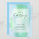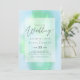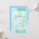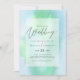 Moderne Hochzeitseinladung mit Textvorlagenfeldern auf beiden Seiten und einer Wolke von grünlich blauer Farbe.
