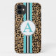 Ein Aquastripe und ein traditionelles Leopardenmuster schmücken dieses iPhone 5 Case im Retro-Stil. Passen Sie dieses Handy an, indem Sie den Monogramm-Brief an Ihre Bedürfnisse anpassen. Das Design stammt aus originalen Kunstwerken.