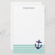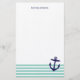 Aqua & Navy Blue Nautical Stripes & Niedlich Anker Briefpapier