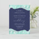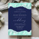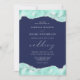 Aqua Navy Blue Silver Foil Glitzer Wedding Einladung