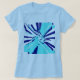 Eine abstrakte Blume entsteht durch die Zusammenführung von wirbelnden Formen in Aqua- und Marineblau in einem runden Gesamtmuster. Bilder hier auf einem hellblauen T - Shirt, mit anderen Stilen und Farben verfügbar. Inspiriert von der Retro-Pop-Kunst der 1960er Jahre, projektiert das Design eine dynamische, optimistische und künstlerische Qualität für eine vielseitige und trendige Ergänzung zu Ihrer lässigen und alltäglichen Kleidung (ob bei Zuhause, Freundschaftsgesprächen, Sportspielen oder Stadtrundfahrt). Das Shirt-Design als "tragbare Kunst" drückt auch ein Gefühl Ihres individuellen Stils aus und trägt zu einem Gefühl des "Gemeinsein" und der Kreativität in Ihren persönlichen Kleiderstücken bei.