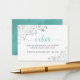 Diese Einschließungskarte ist so konzipiert, dass Ihre Gäste Ihre Website-Adresse gelassen haben, sodass sie alle Details und/oder UAWG online finden können. Es zeichnet sich durch ein elegantes und dennoch schlichtes Design aus, das mit einer laky aqua-, cyan- oder hellen aquamarinen Script-Kalligraphie auf weißem Hintergrund und verzierten silbergrauen Spitzen-Rillen in den Ecken aufwartet.
