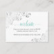 Aqua oder Cyan & Silver Lace White Wedding Website Begleitkarte