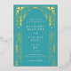Eine schöne und formelle Hochzeitseinladung mit Goldfolienelementen und Monogramm-Initialen. Ideal für eine klassische Hochzeit mit einer modernen Deko-Drehung. Die Details der Goldfolie schaffen eine Blüte von Blume und Blattwerk mit einem Vintagen Stil.