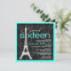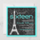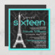 Niedliche, trendige und moderne Aqua Damask & Eiffel Turm 16 . Geburtstag Party Einladungen.