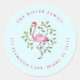 Aqua & Pink Flamingo Holiday Address Siegel Runder Aufkleber