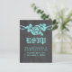 Sweet und hübsche Rose Chalkboard Wedding RSVP Postcard in Türkis mit einem Single schöne Rose auf einem Wein auf einem Kalkboard-Look Hintergrund. Dieses elegante Design eignet sich perfekt für eine Hochzeit im Frühjahr oder Sommer. Einfach zu anpassen, fügen Sie einfach Ihre Hochzeitsdetails in den Textfeldern zur Verfügung gestellt. Klicken Sie auf "Anpassen", um weitere Personalisierungsoptionen zu erhalten.