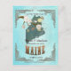 Aqua Save the Date Postkarte mit Maine-Karte mit hübschen Vögeln auf Baumzweigen.