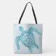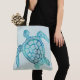 Überall druckt Tote Tasche in hellen Aqua mit kleinen weißen Polka Punkte und Grafik einer Aqua-Meeresschildkröte. Passen Sie auf, um jeden Text, den Sie gewollt haben, zu dieser liebevollen Tasche hinzuzufügen.