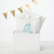 Weißer Sack zum Thema Strand mit grafischen Illustrationen von Aqua-Muscheln. Personalisieren Sie den benutzerdefinierten Text für Hochzeitsfeier. Ideal für Süßigkeiten und Süßigkeiten Bars.