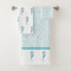 Strandhaus inspiriert Badetuch-Set, mit Kunstwerken eines Aqua-Seepferd und Aqua-Wellenmuster. Das Set für Ihr Strandbad ist ein tolles Geschenk.