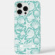 Customize this aqua shell pattern iPhone 16 pro max case with your your name in a trendy modern CAP font in aqua on white. It's so modern and beachy!