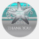 Aqua & Silver Starfish Beach Gastgeschenk Stickers. Entsprechende Einladungen sind verfügbar.