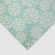Urlaubspapier mit Aqua-blauem Hintergrund und vielen weißen Schneeflocken und Kreise.