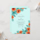 This design features a bright aqua background adorned with vibrant watercolor florals. Lustrous orange poppies and deep teal blossoms are clustered with lush green leaves to create a refreshing botanical aesthetic. The airy color palette creates a cheerful mood perfect for a breezy outdoor spring or summer event.