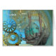 Die Fantasy Digital-Grafik zeichnet sich durch eine Schneckenform Steampunk Zeitfahrmaschine mit abstraktem Aqua-Hintergrund aus