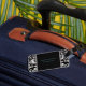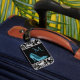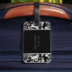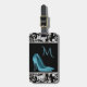Das Gepäckanhänger der schicken Dame wurde auf schwarzem Hintergrund gefertigt, mit einem silbernen Damast-Ober- und Unterkante und einer Single-Aqua-Folie, die hoch in der Ferse aussieht. Personalisieren Sie das Ein-Buchstaben-Monogramm und das Textfeld, um Ihre Bedürfnisse Anzug. Ein auffälliges Gepäckanhänger, das schwer zu übersehen ist.