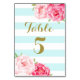 Tischnummern in hellpastellblauem und weißem Streifen Muster mit Vintag rosa Aquarellfarben-Blume. Passen Sie diese Karten mit Ihren Tischnummern für eine besondere Ergänzung Ihrer Hochzeitstische an. Auch geeignet zum Geburtstag und Jubiläum Party.