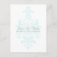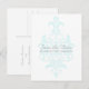 Moderne Eleganz beschreibt dieses raffinierte, subtile Damask Save the Date Postcard mit einem helltürkisfarbenen Damast blühend Hintergrund. Dieses klassische Save the Date ist ideal für die Ankündigung einer traditionellen Hochzeit und kann leicht mit Ihren Hochzeitsdetails angepasst werden. Klicken Sie für weitere Anpassungsoptionen auf die Schaltfläche Anpassen.