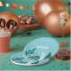Tropische Babyduschplatte mit tropischen Blätter in Aqua- und Grüntönen. Koordiniert mit der Baby on Board Baby Dusche Kollektion.
