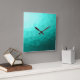 Aqua Türkis Gradient Geometric Mesh Pattern Quadratische Wanduhr