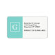 Aqua Türkis White Gerahmt Initial Monogram Adressaufkleber