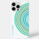 Moderne helle Aqua, Türkis, Minzgrün und aquamarin blau gefärbte Kreise Streifen Muster Handy Gehäuse. Mit Raum zum Anpassen mit einem Namen, Monogramm oder Initialen Ihrer Wahl. Schönes, modernes und cooles Cover für den Trend-geschickten und kunstliebenden angesagten Trendsetter, künstlerischer Motif-Liebhaber, der will, ihr Handy vor Staub und Schmutz, Abnutzung und Tränen zu schützen. Dieses Design ist für Apple iPhone 6, 7, und 8 Plus, 10 oder X, XR, XS, 11, 12, und 13 Mini, 14, und 15 Plus und Pro Max Handy Hüllen erhältlich. Zeigen Sie Ihren Stil, sehen Sie in der Mode und fühlen Sie sich stilvoll mit einem einzigartigen Design auf einem mobilen Zubehör Ihrer Wahl.
