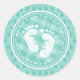 Aqua Turquoise Retro Baby Feet Babydusche Runder Aufkleber