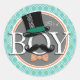 Aqua Turquoise Retro Funny Boy Baby Dusche Runder Aufkleber