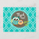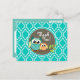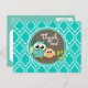 Aqua Turquoise Retro Owls Baby Dusche Postkarte