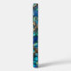 Diese nah-up-Ansicht präsentiert eine einzigartige Textur mit einem geflochtenen goldenen Gitter auf einem lebendigen Mosaik aus Aqua und aquamarinen Tönen. Die flüssigen Farbtropfen geben ein Gefühl der Tiefe, ähnlich glatten, polierten Flusssteinen oder Wassertropfen, die unter einem feinen Netz gefangen werden. Der elegante Kontrast zwischen den metallischen Linien und den glänzenden Farben schafft ein faszinierendes visuelle.